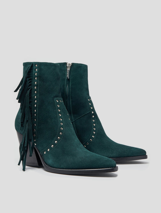 🔥 PRIX EXCEPTIONNEL🔥ALISON BOTTINE À FRANGES "MOJAVE" 80MM EN DAIM EMERALD GREEN
